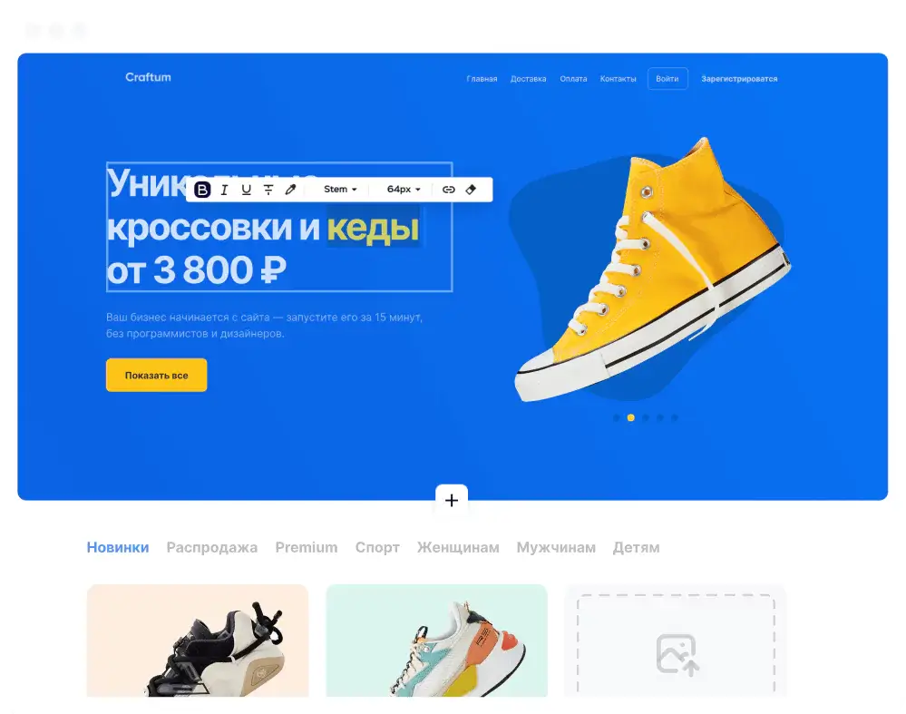 Понятный интерфейс Craftum позволяет не только поменять текст самому, но и полностью сделать сайт.
